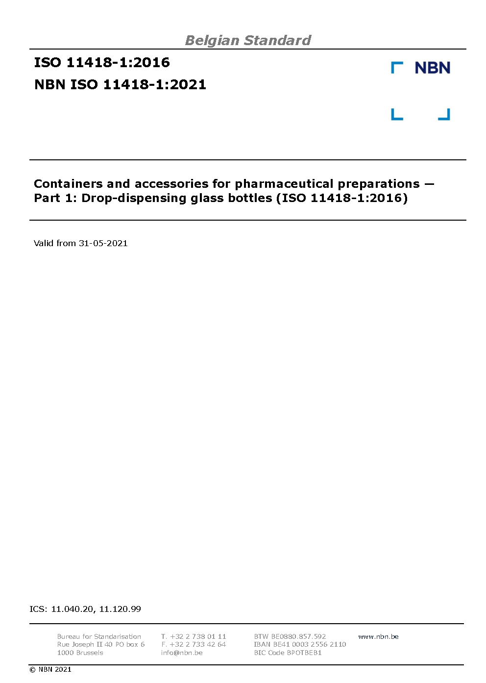 Containers and accessories for pharmaceutical preparations — Part 1: Drop-dispensing glass bottles
