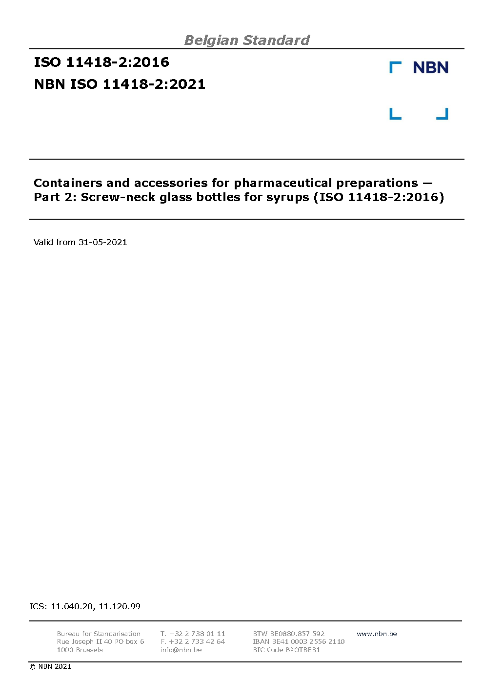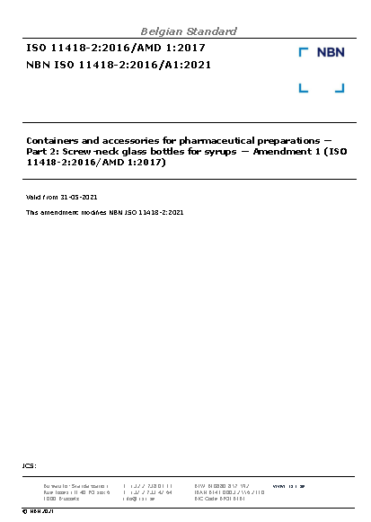 Containers and accessories for pharmaceutical preparations — Part 2: Screw-neck glass bottles for syrups — Amendment 1
