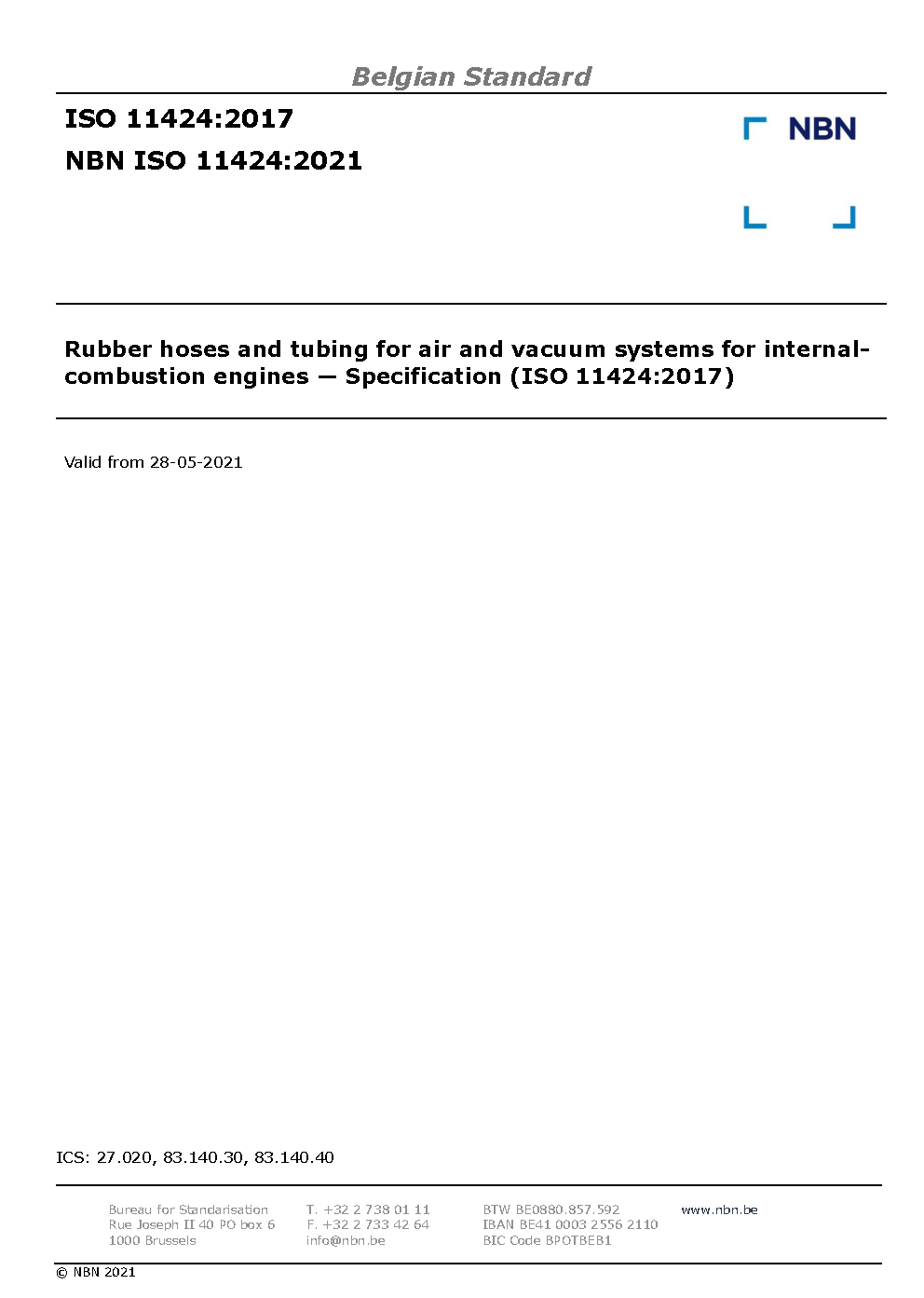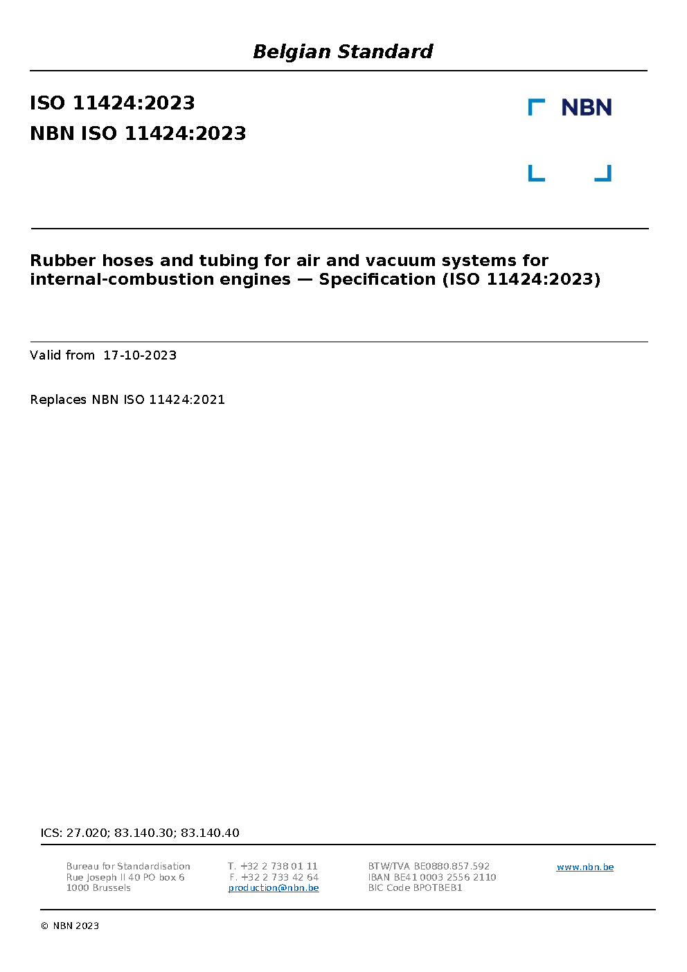 | Publisher | Bureau de Normalisation Belge (NBN) |