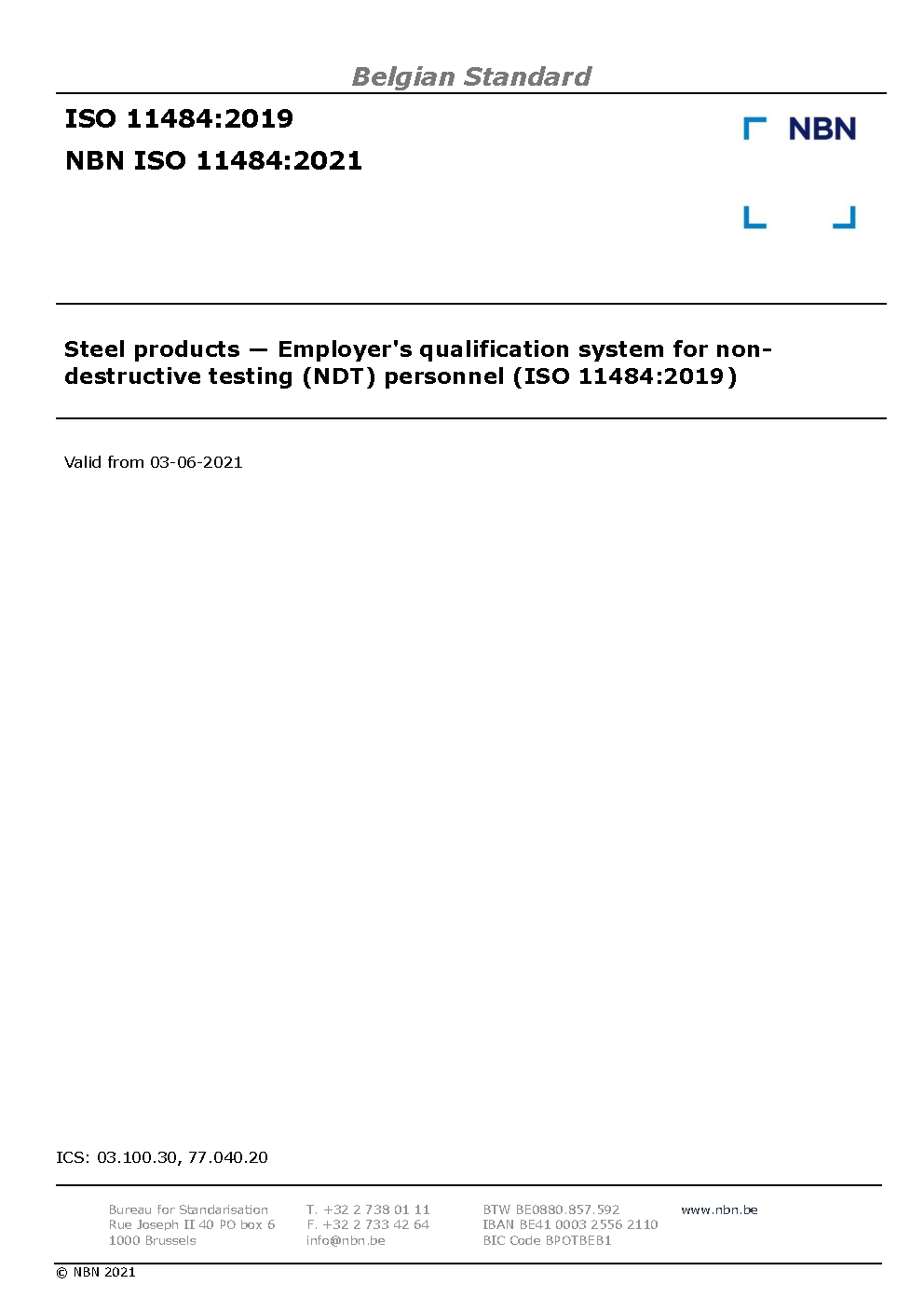 | Publisher | Bureau de Normalisation Belge (NBN) |