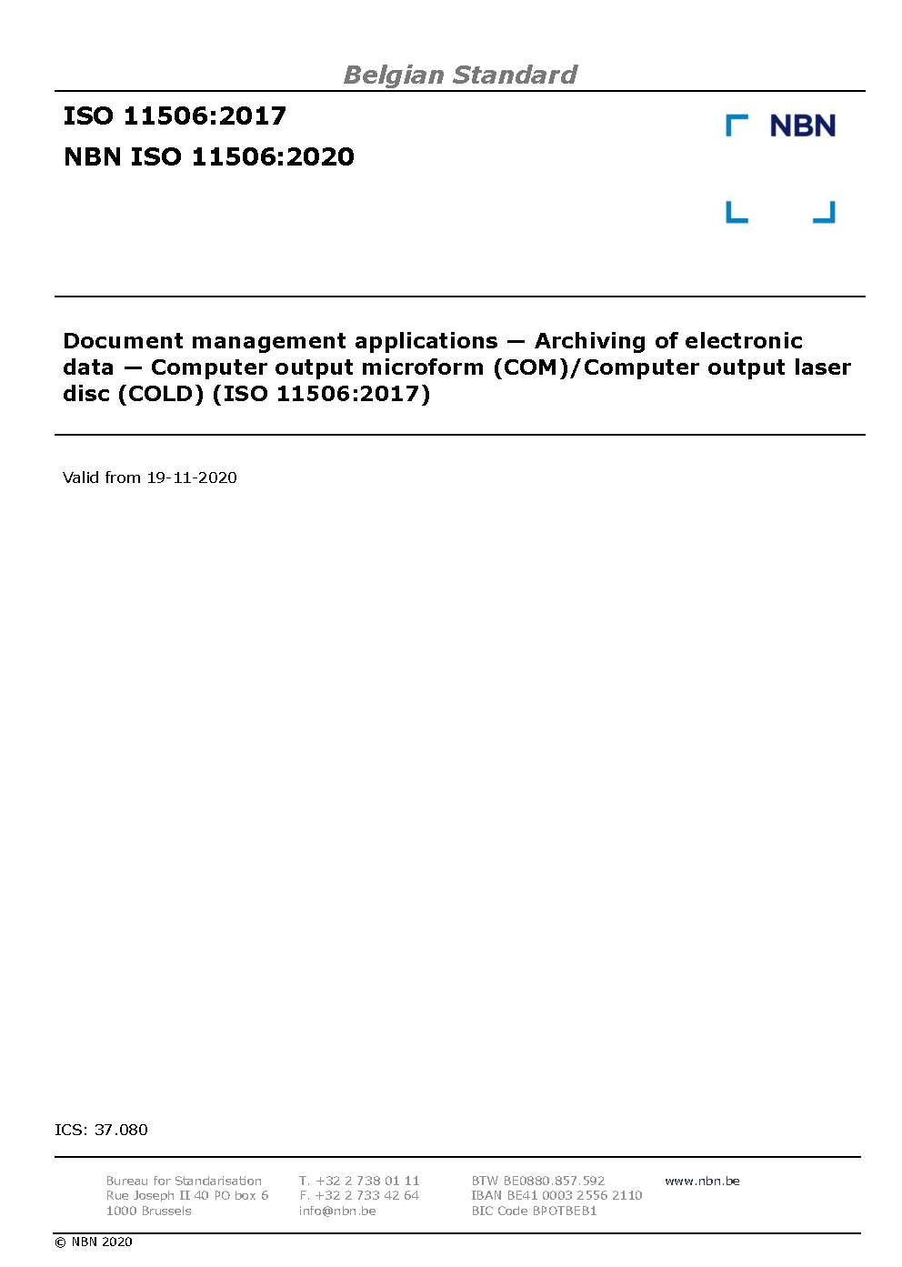| Publisher | Bureau de Normalisation Belge (NBN) |