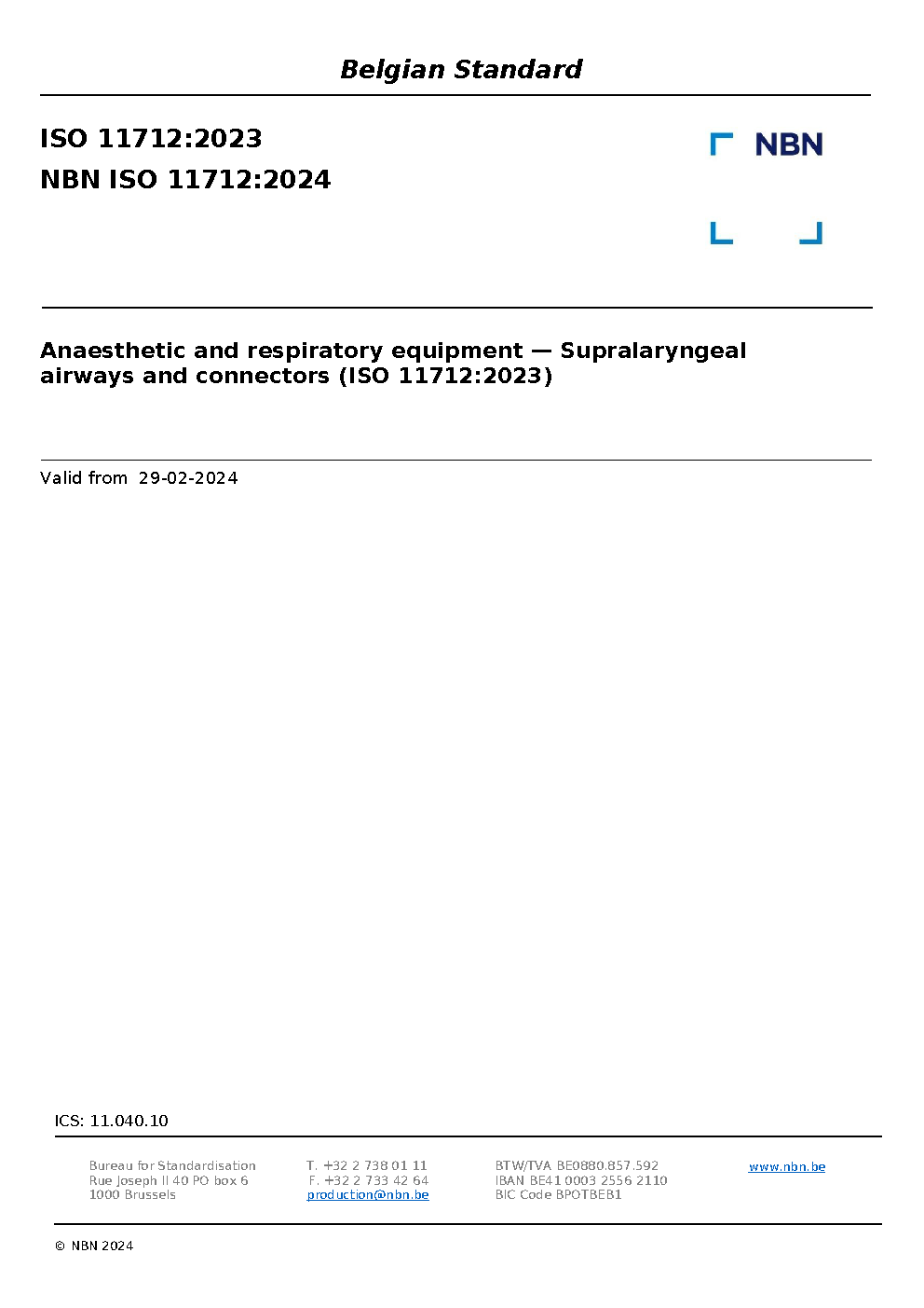 | Publisher | Bureau de Normalisation Belge (NBN) |
