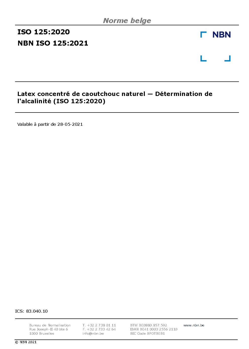 NBN ISO 125:2021