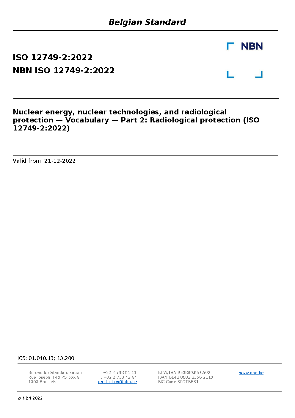 | Publisher | Bureau de Normalisation Belge (NBN) |