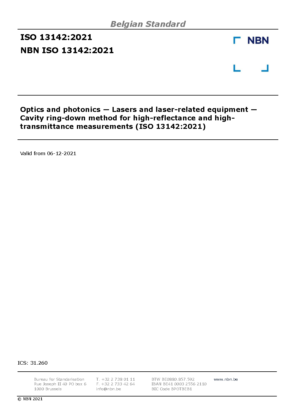 | Publisher | Bureau de Normalisation Belge (NBN) |