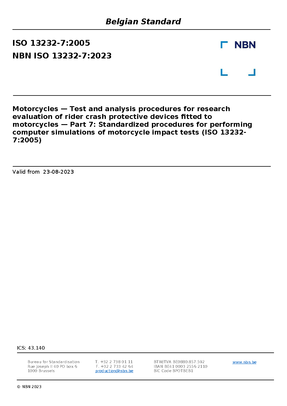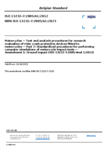 Motorcycles — Test and analysis procedures for research evaluation of rider crash protective devices fitted to motorcycles — Part 7: Standardized procedures for performing computer simulations of motorcycle impact tests