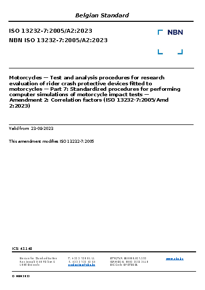 ISO 13232 specifies the minimum requirements for research into the feasibility of protective devices fitted to motorcycles, which are intended to protect the rider in the event of a collision.