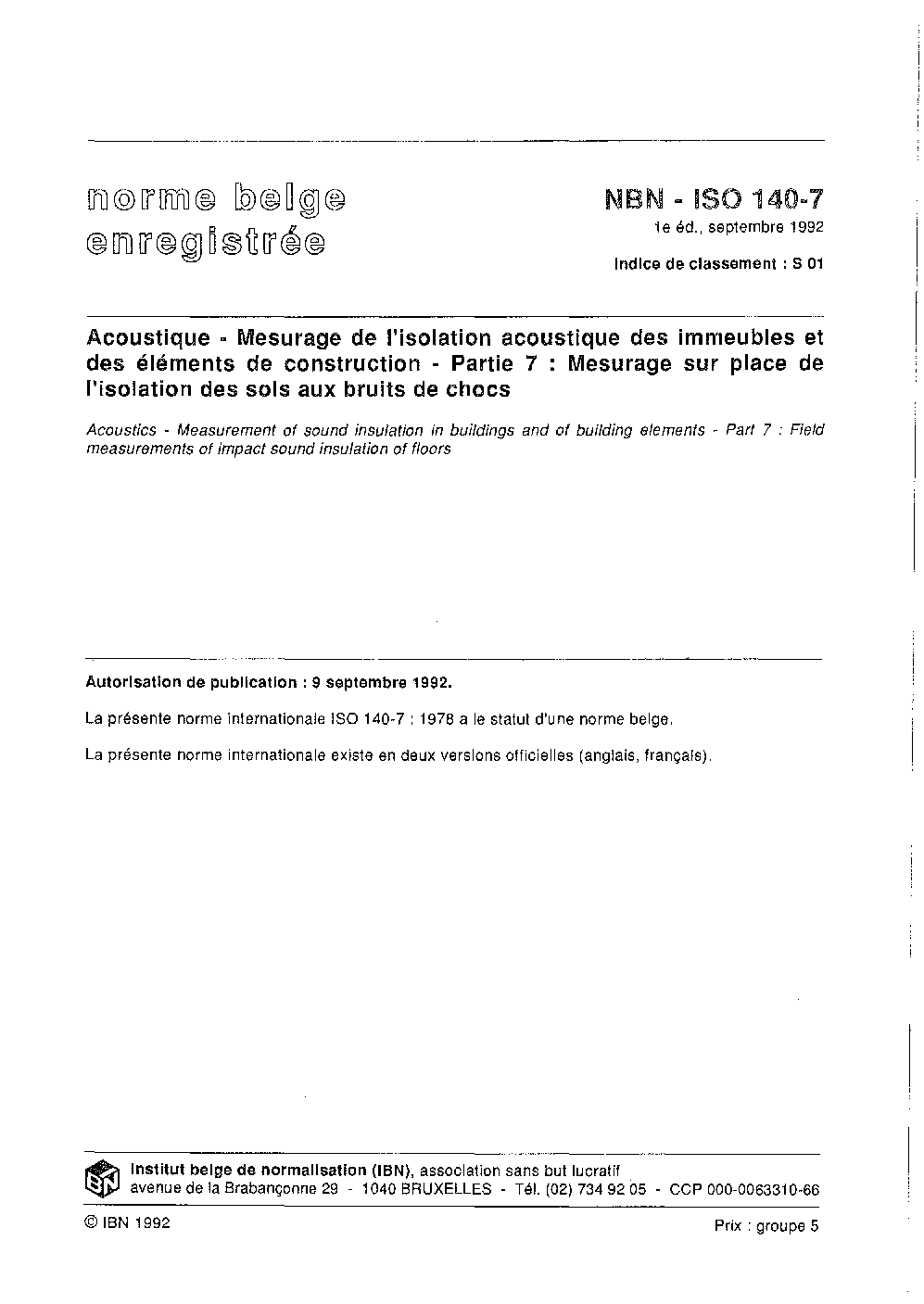 NBN ISO 140-7:1992