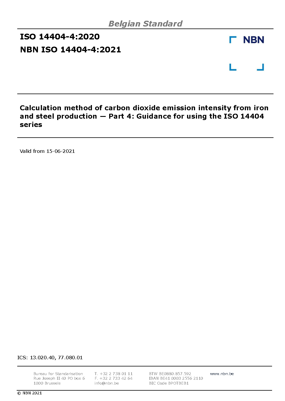 This document provides guidance for calculating the CO2 intensity at steel plants with all types of process routes, by defining the boundary, CO2 emission factors and the intermediate products for which upstream emissions are considered for all types of process routes. In particular, this document provides guidance applicable to the ISO 14404 series to the types of steel plants listed below. This document also includes the Universal Calculation Sheet, which covers all relevant emission sources from ISO 14404-1, ISO 14404-2 and ISO 14404-3 to assist the calculation of CO2 emissions.