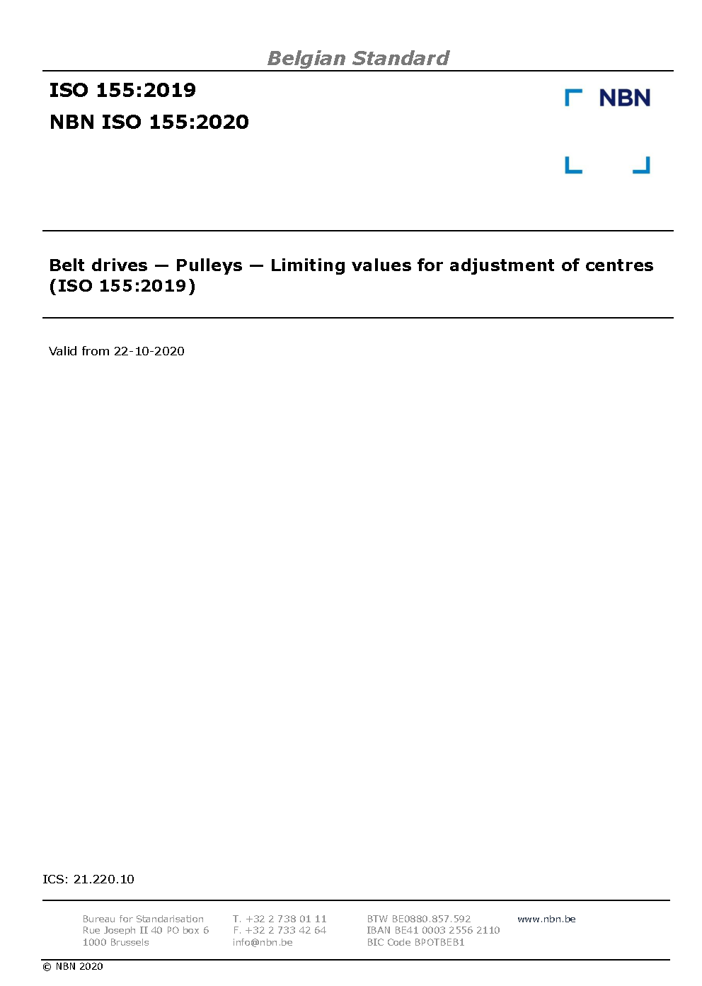 NBN ISO 155:2020