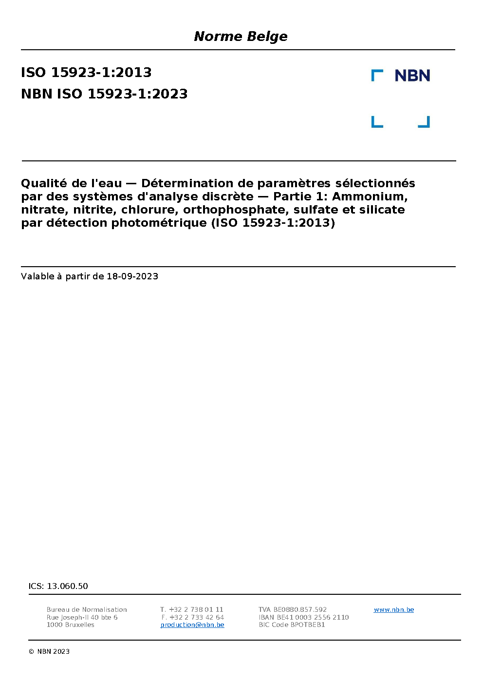 | Publisher | Bureau de Normalisation Belge (NBN) |