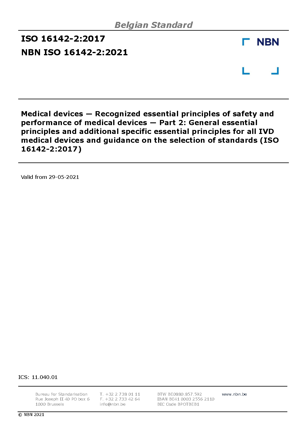 | Publisher | Bureau de Normalisation Belge (NBN) |