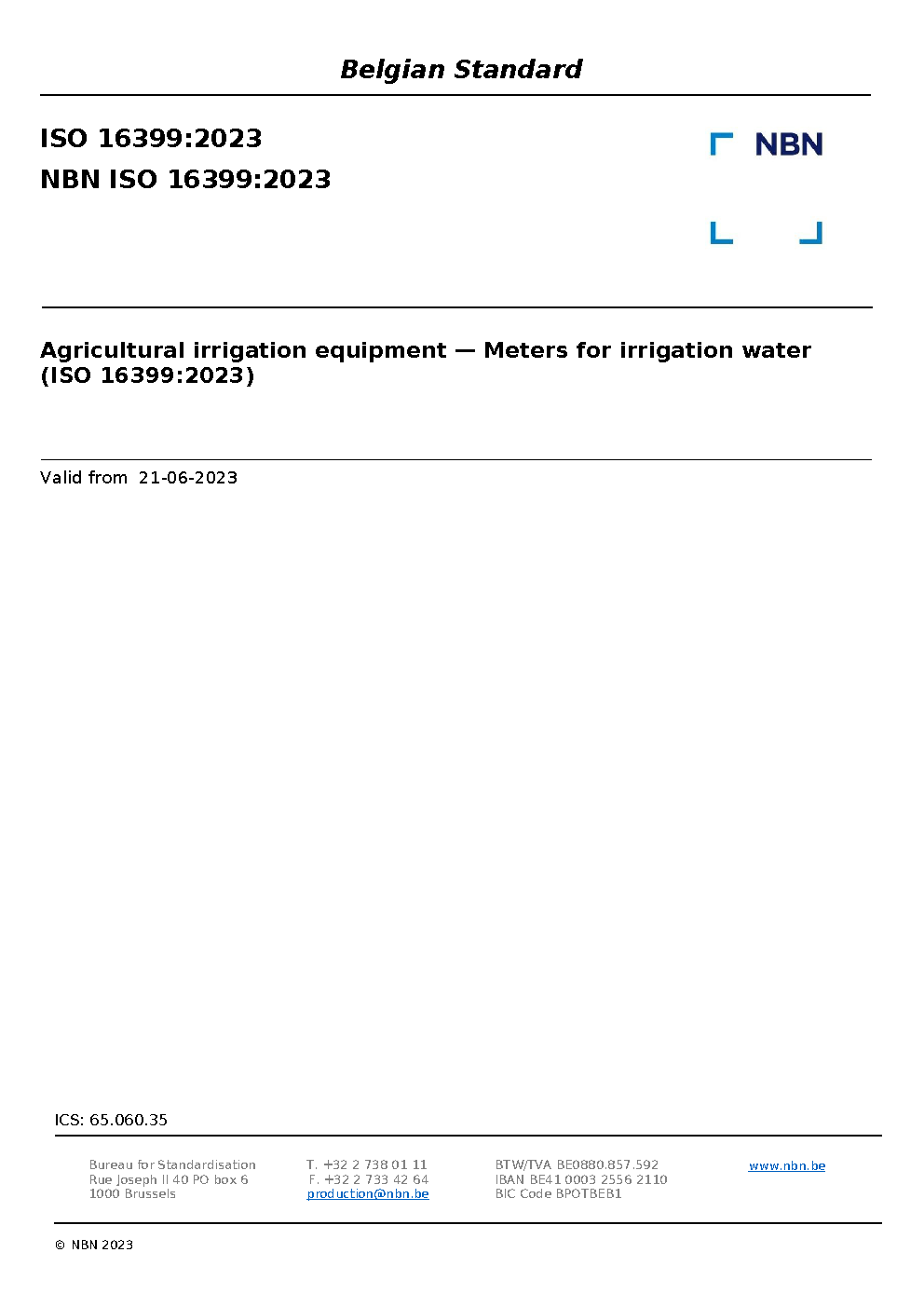 This document specifies the requirements and certification procedures for water meters, irrespective of the design technologies used to meter the actual volume of cold water or heated water flowing through a fully charged closed conduit. These water meters incorporate devices, which indicate the integrated volume. It applies to water meters intended for irrigation use (herein after referred to as water meters), regardless of the water quality used for this purpose.