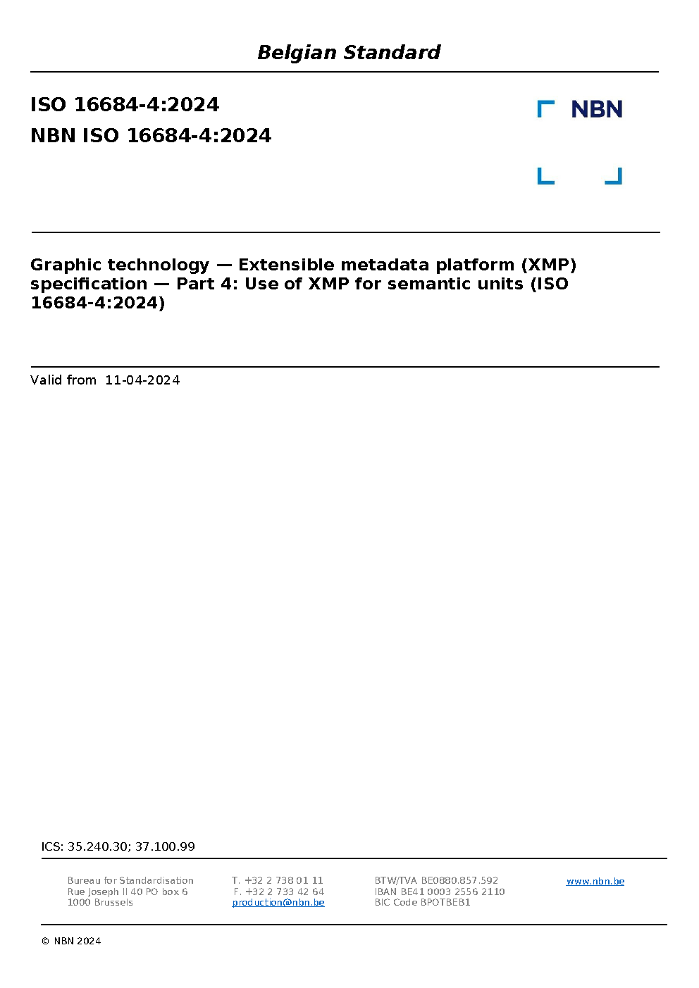 | Publisher | Bureau de Normalisation Belge (NBN) |