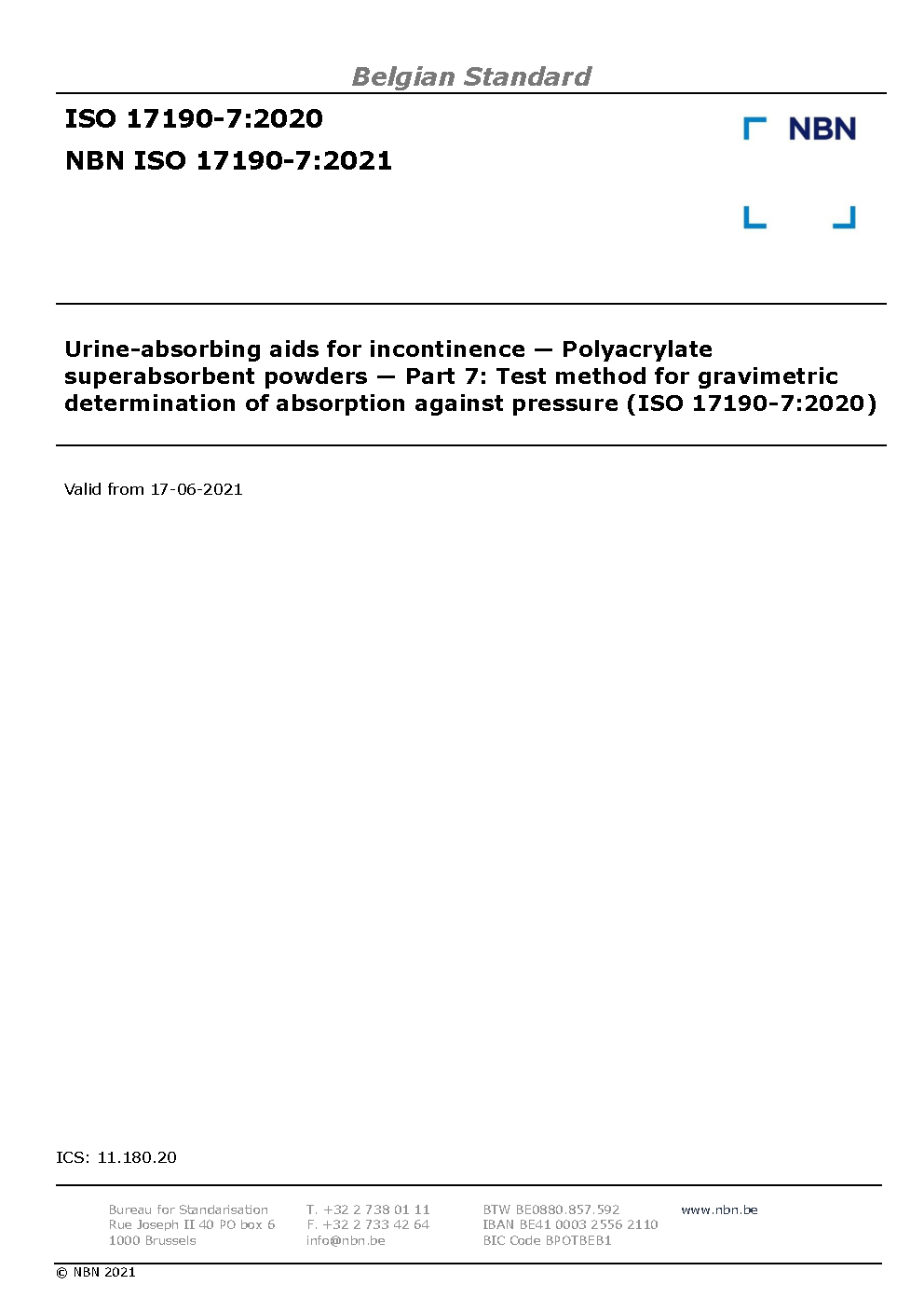 Urine-absorbing aids for incontinence — Polyacrylate superabsorbent powders — Part 7: Test method for gravimetric determination of absorption against pressure