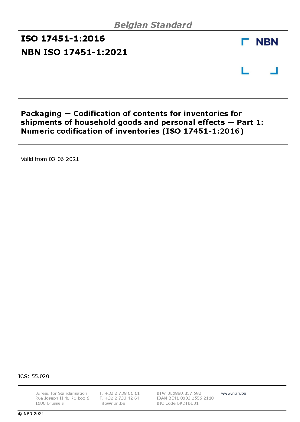 | Publisher | Bureau de Normalisation Belge (NBN) |