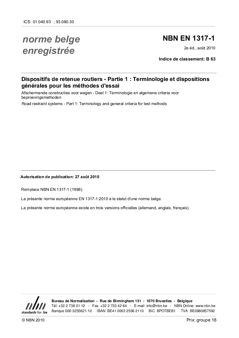 | Publisher | Bureau de Normalisation Belge (NBN) |