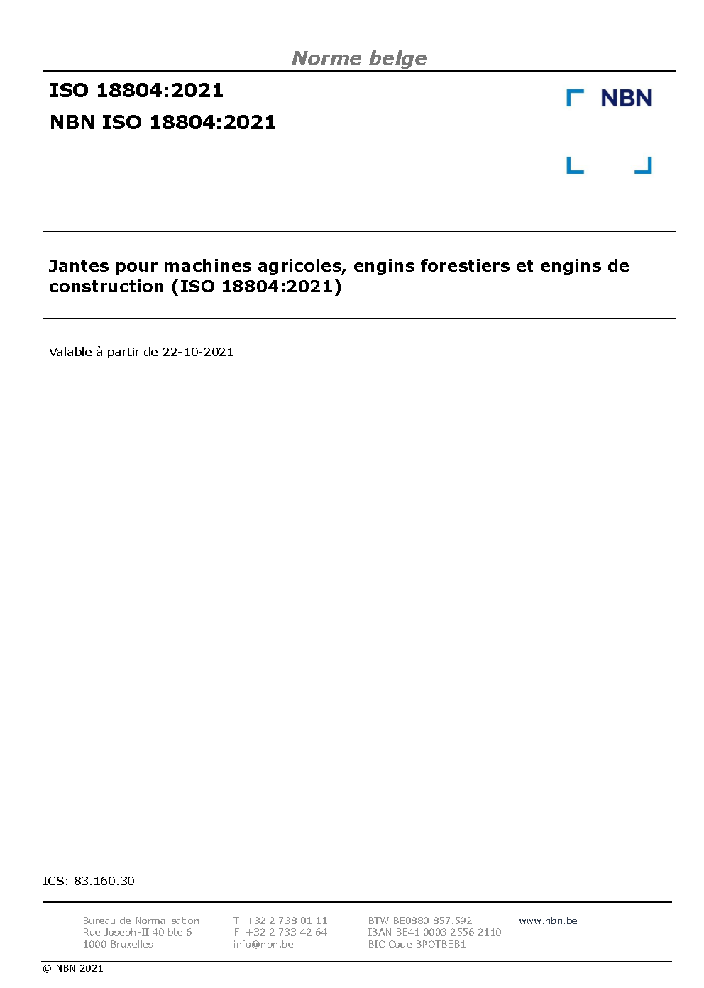 | Publisher | Bureau de Normalisation Belge (NBN) |