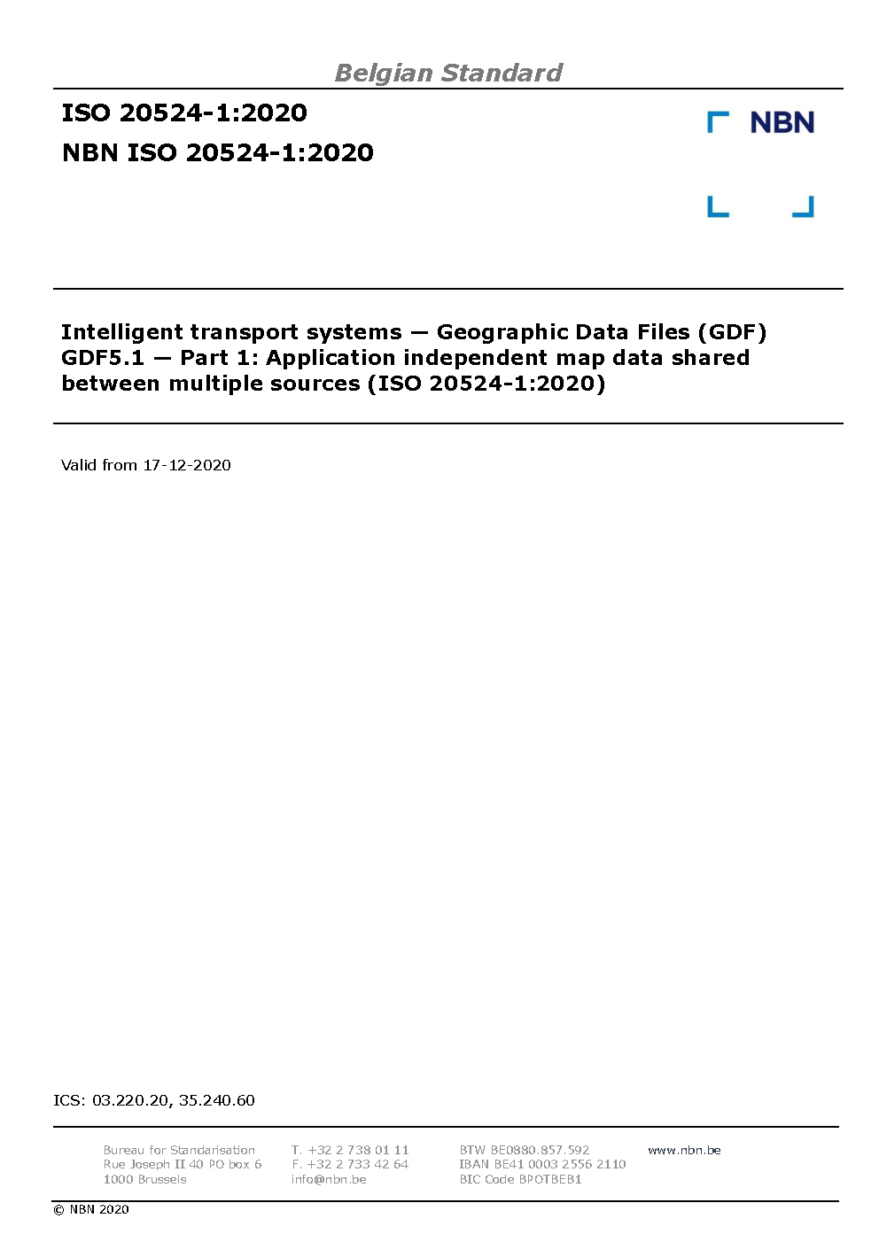 | Publisher | Bureau de Normalisation Belge (NBN) |