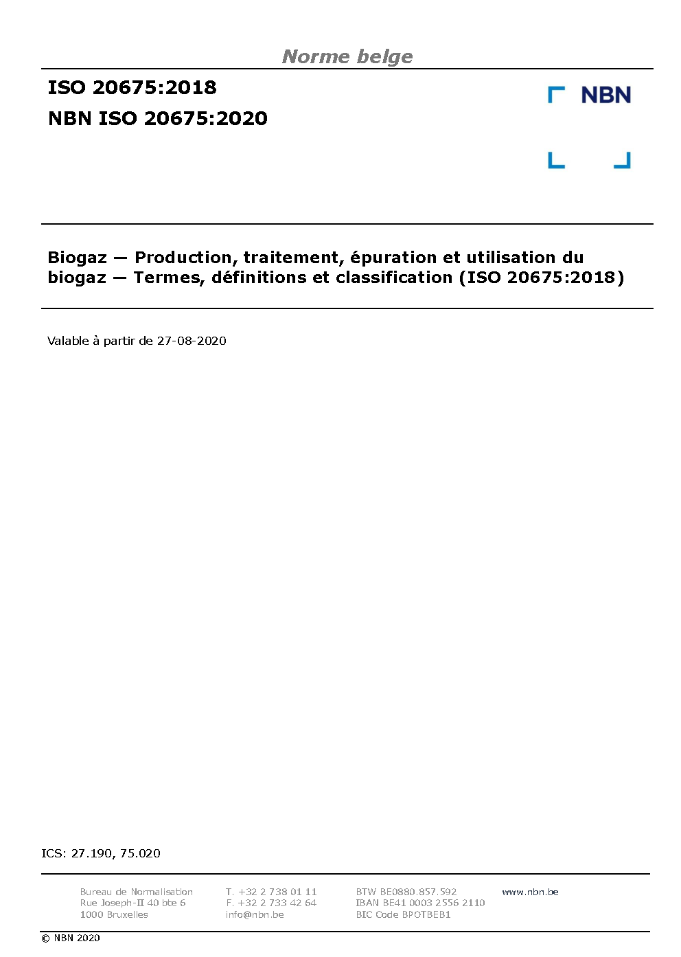 | Publisher | Bureau de Normalisation Belge (NBN) |