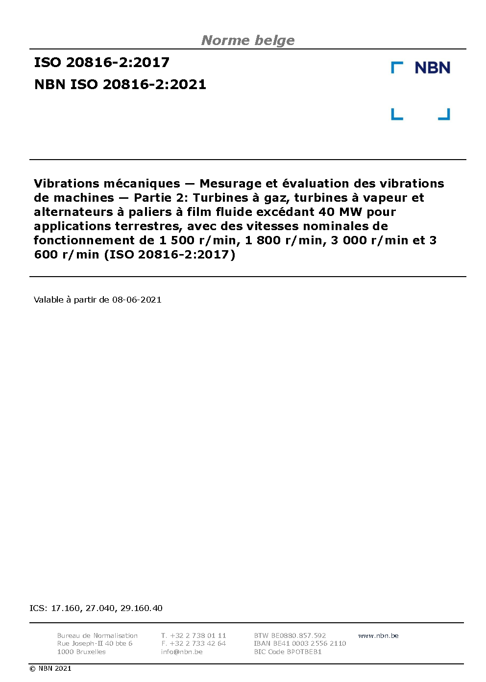 Mechanical vibration — Measurement and evaluation of machine vibration — Part 2: Land-based gas turbines, steam turbines and generators in excess of 40 MW, with fluid-film bearings and rated speeds of 1 500 r/min, 1 800 r/min, 3 000 r/min and 3 600 r/min