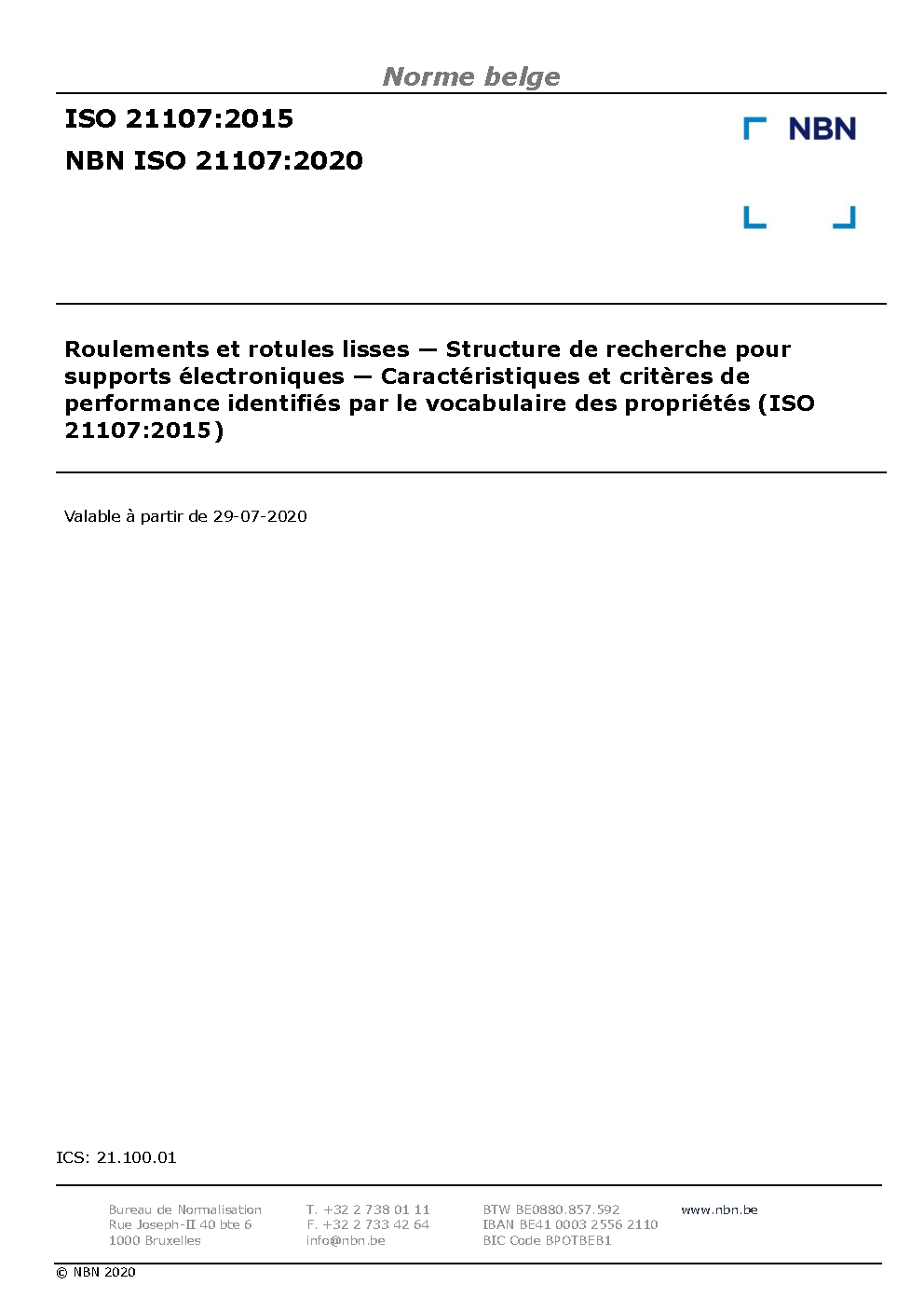 NBN ISO 21107:2020