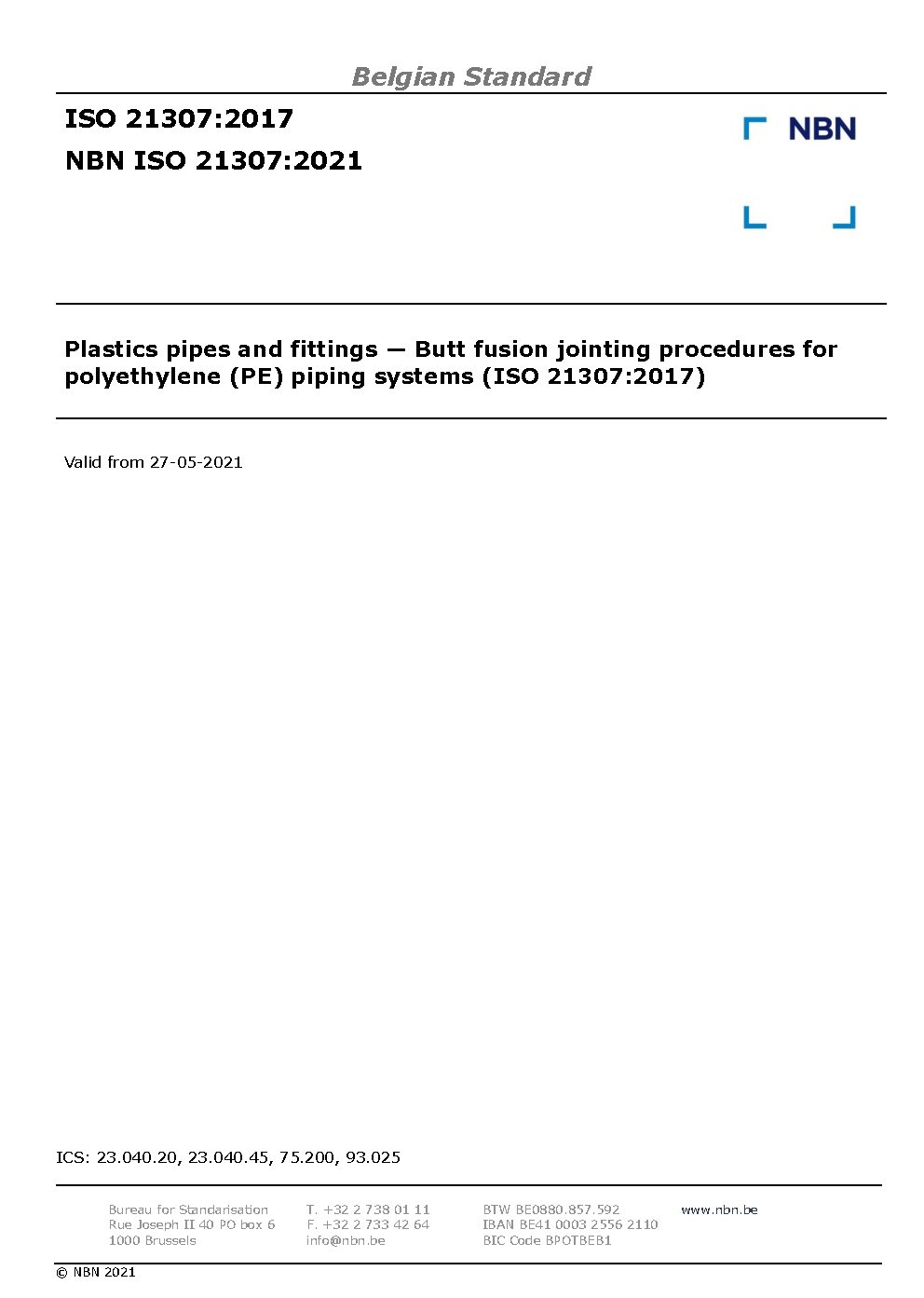| Publisher | Bureau de Normalisation Belge (NBN) |