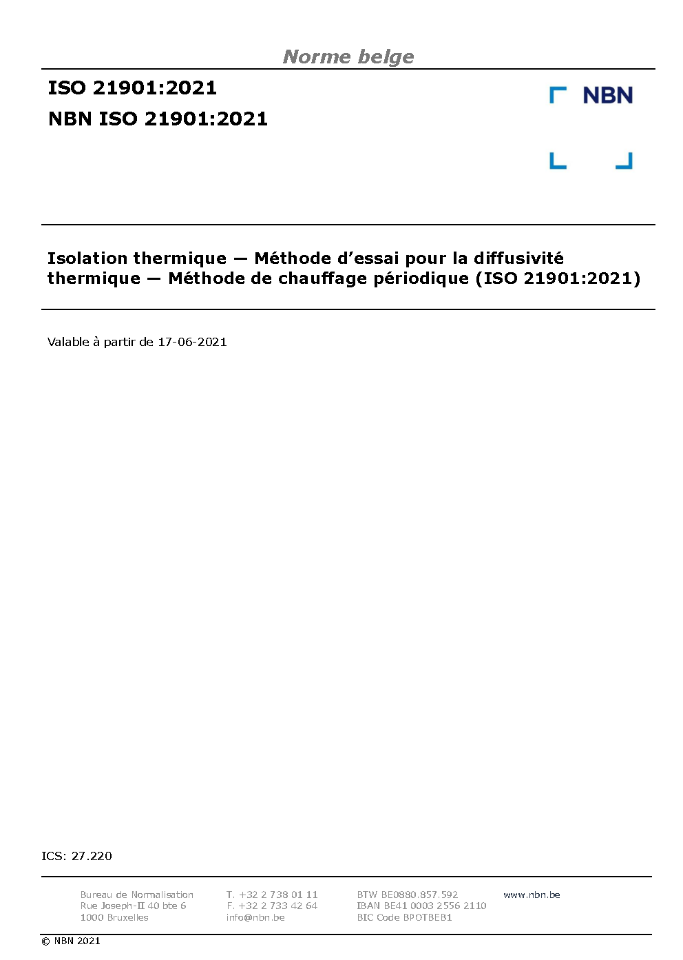 | Publisher | Bureau de Normalisation Belge (NBN) |