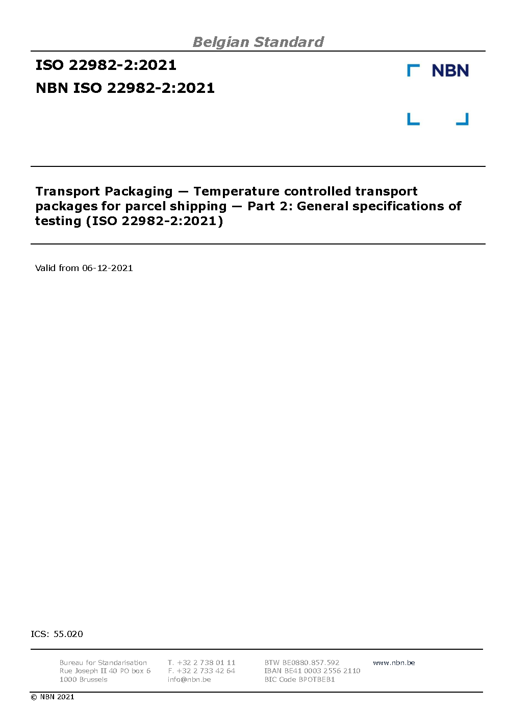 Transport Packaging — Temperature controlled transport packages for parcel shipping — Part 2: General specifications of testing