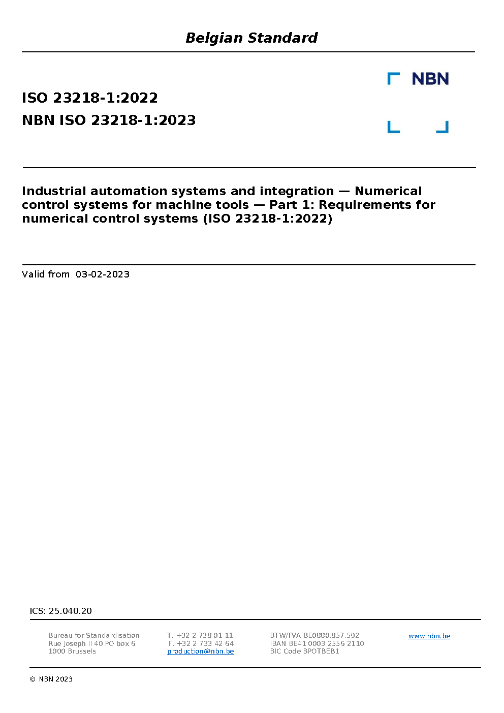 NBN ISO 23218-1:2023
