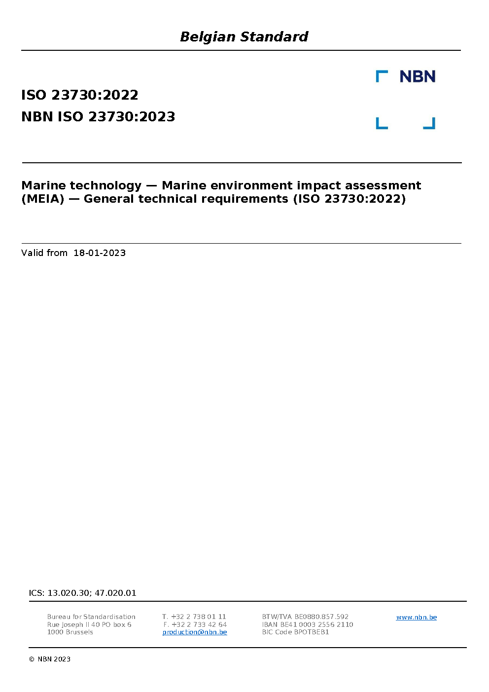 NBN ISO 23730:2023