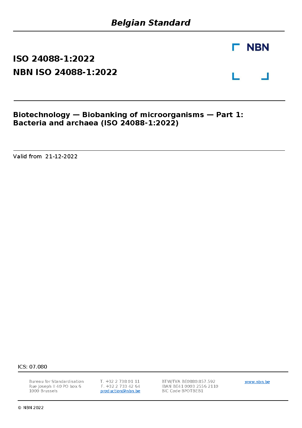 | Publisher | Bureau de Normalisation Belge (NBN) |