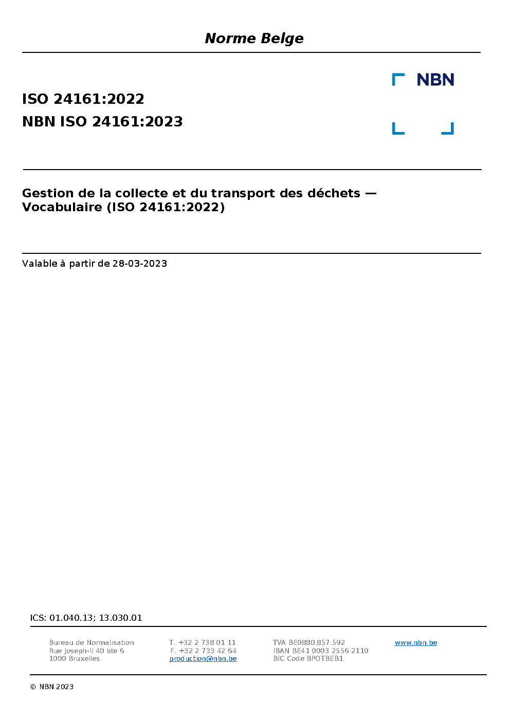 NBN ISO 24161:2023