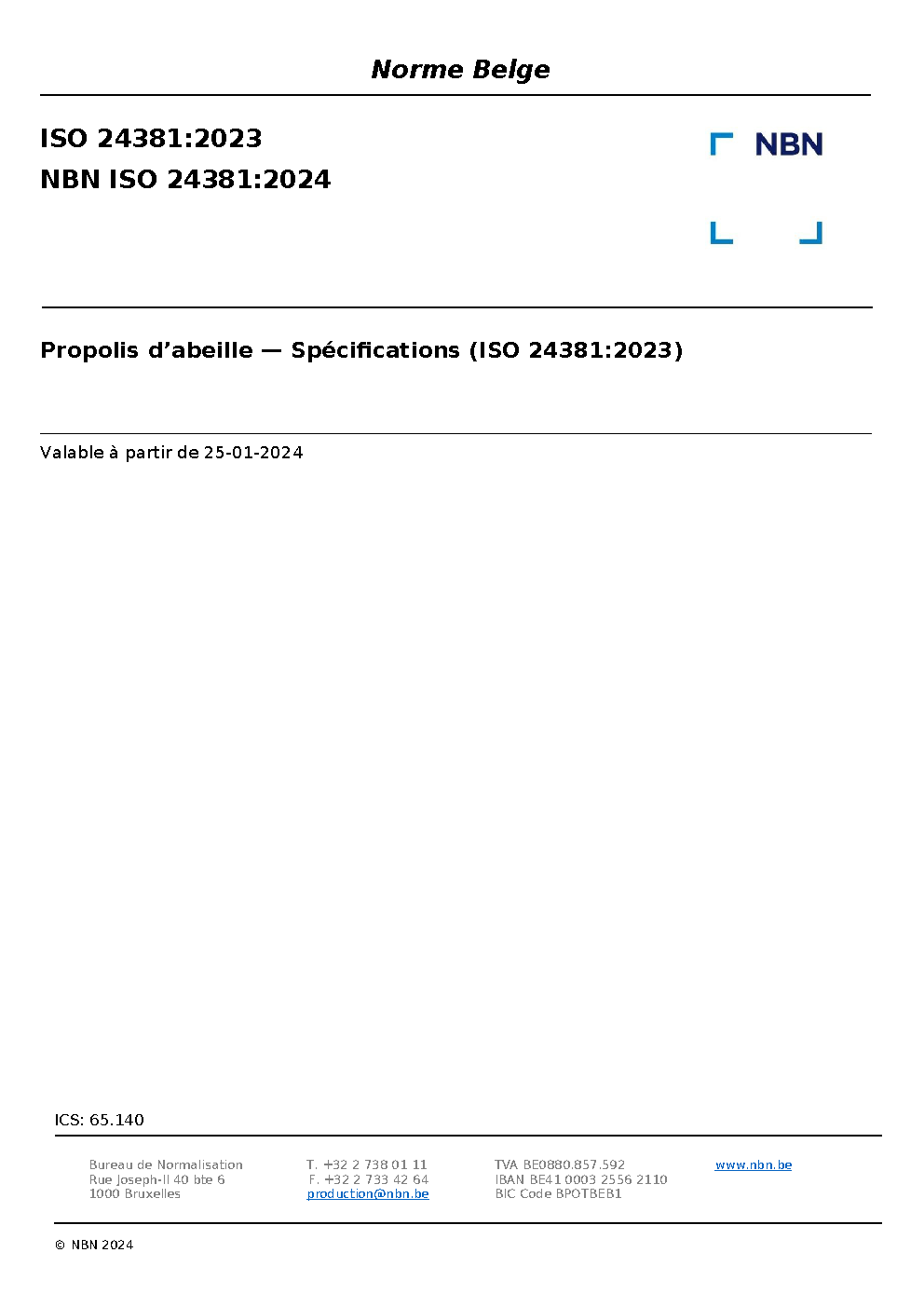 This document specifies the quality requirements, analytical methods, and packaging, marking, labelling, storage and transportation conditions for bee propolis.