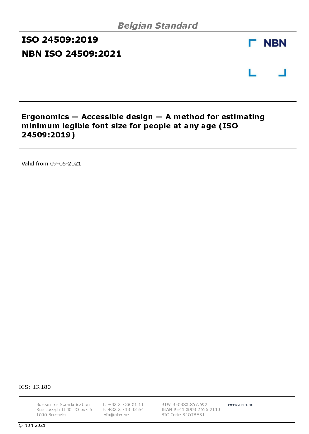 Ergonomics — Accessible design — A method for estimating minimum legible font size for people at any age