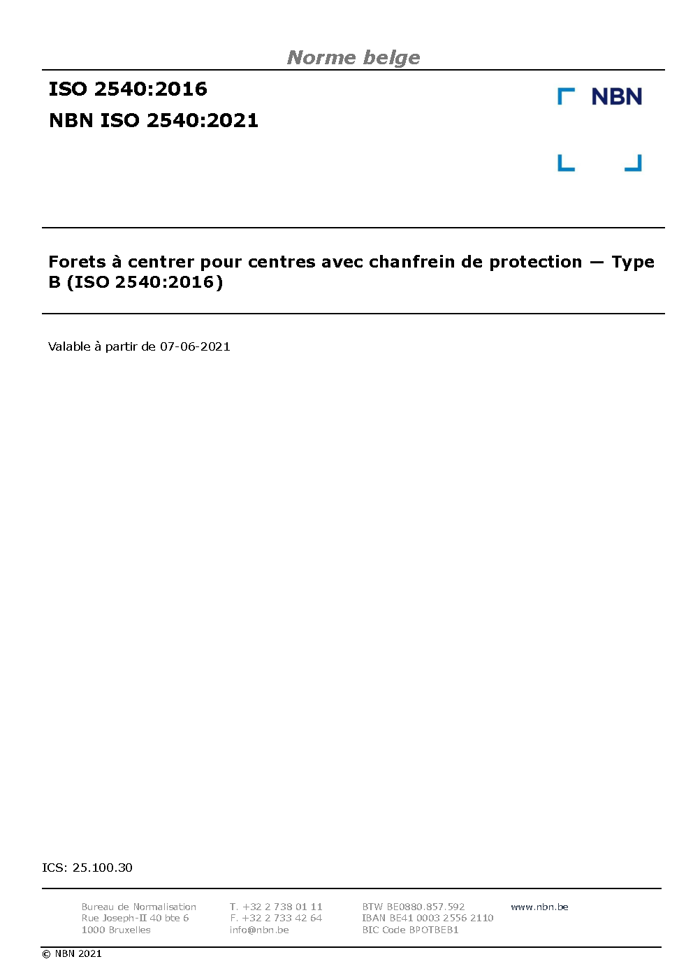 | Publisher | Bureau de Normalisation Belge (NBN) |