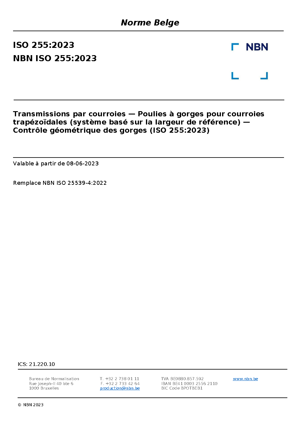 | Publisher | Bureau de Normalisation Belge (NBN) |