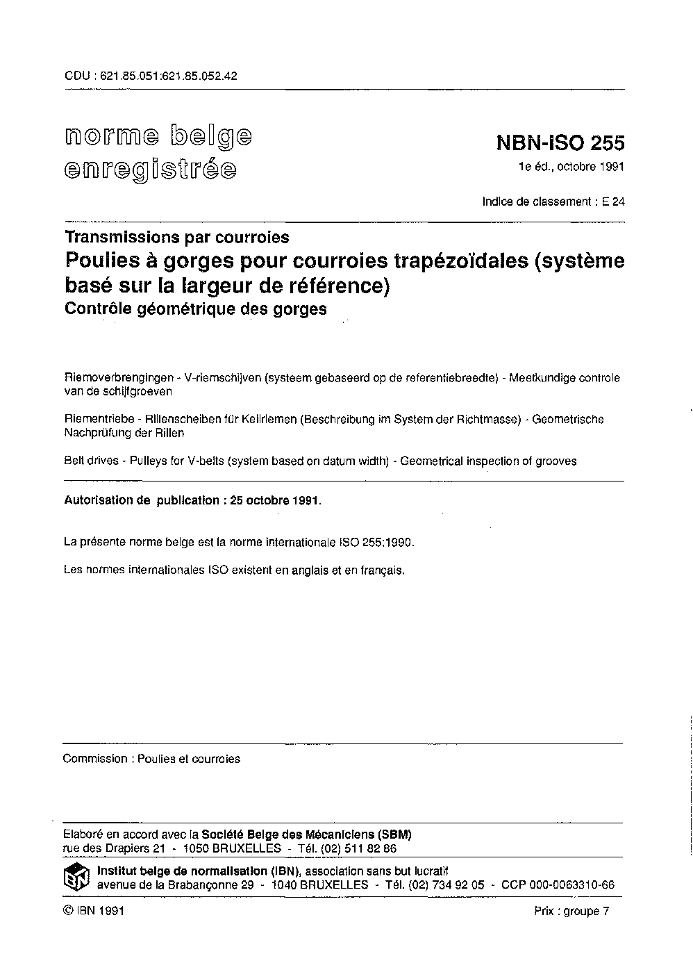 NBN ISO 255:1991