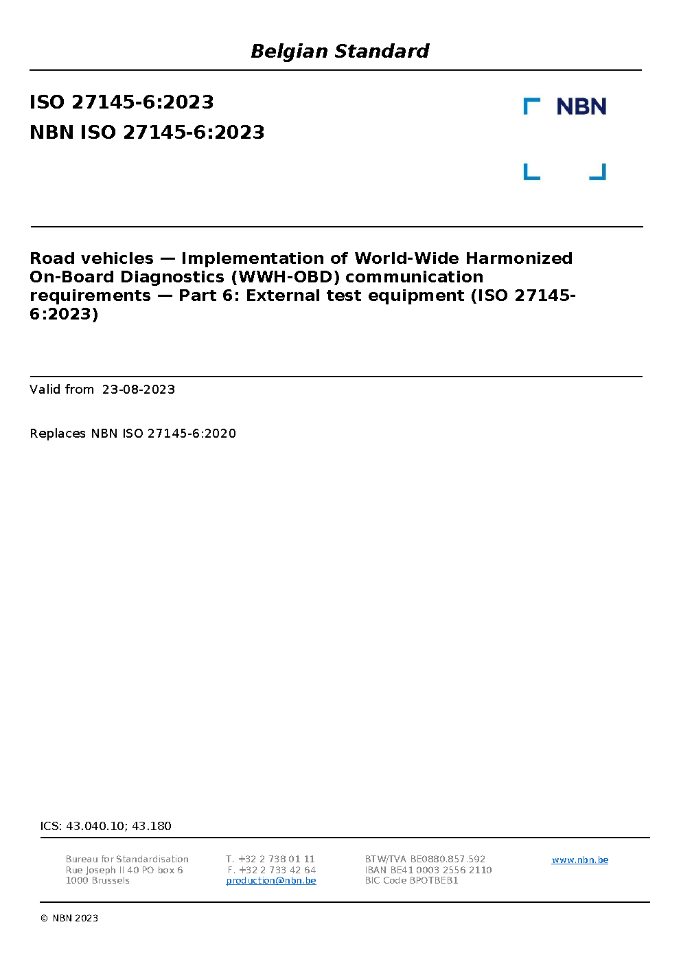| Publisher | Bureau de Normalisation Belge (NBN) |