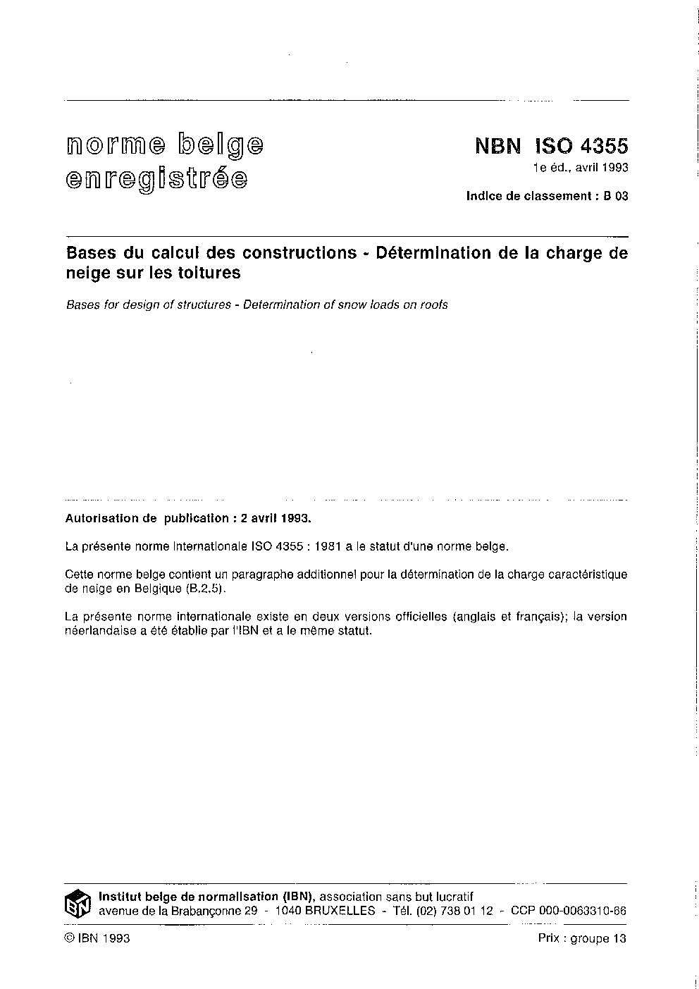| Publisher | Bureau de Normalisation Belge (NBN) |