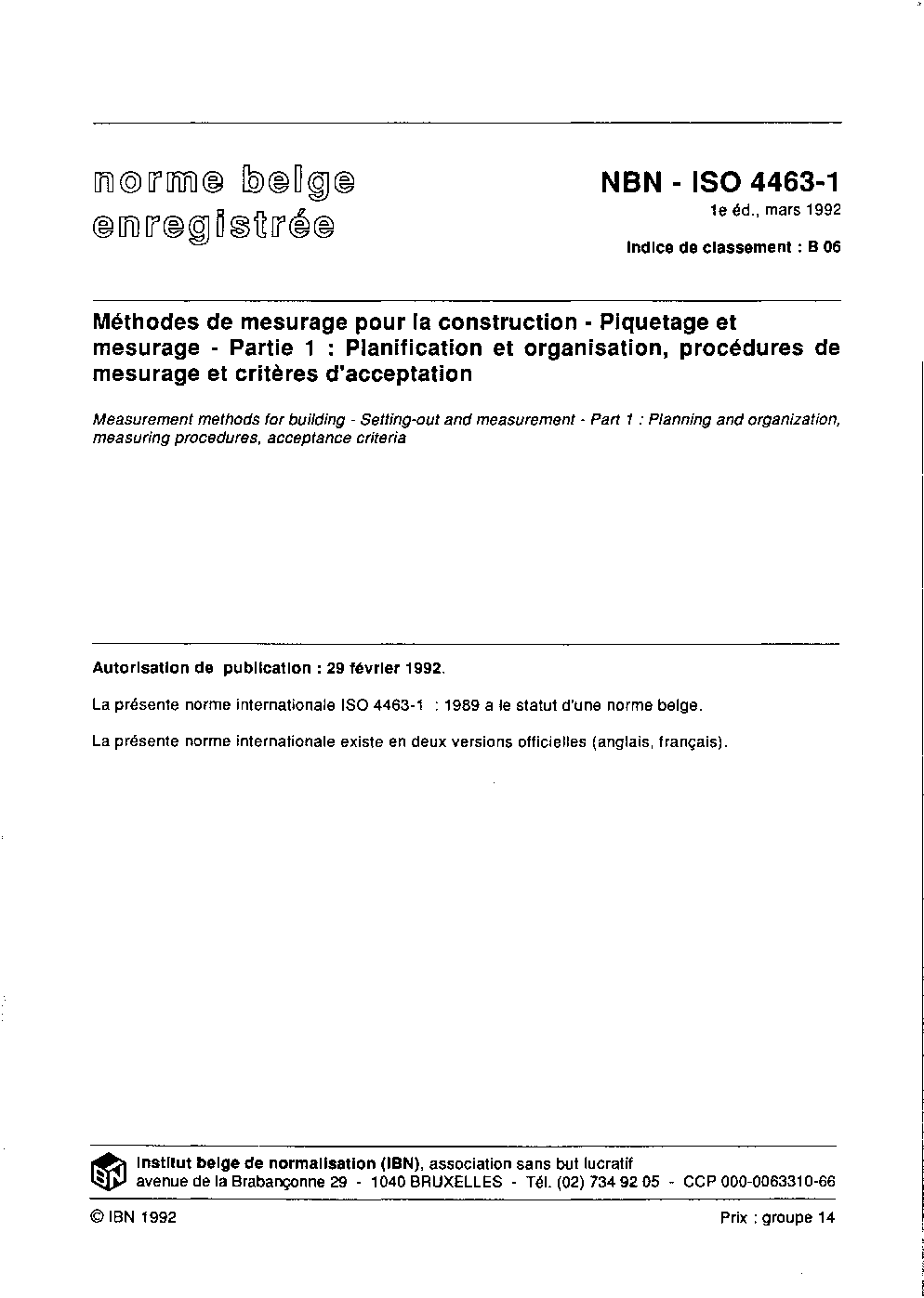 NBN ISO 4463-1:1992