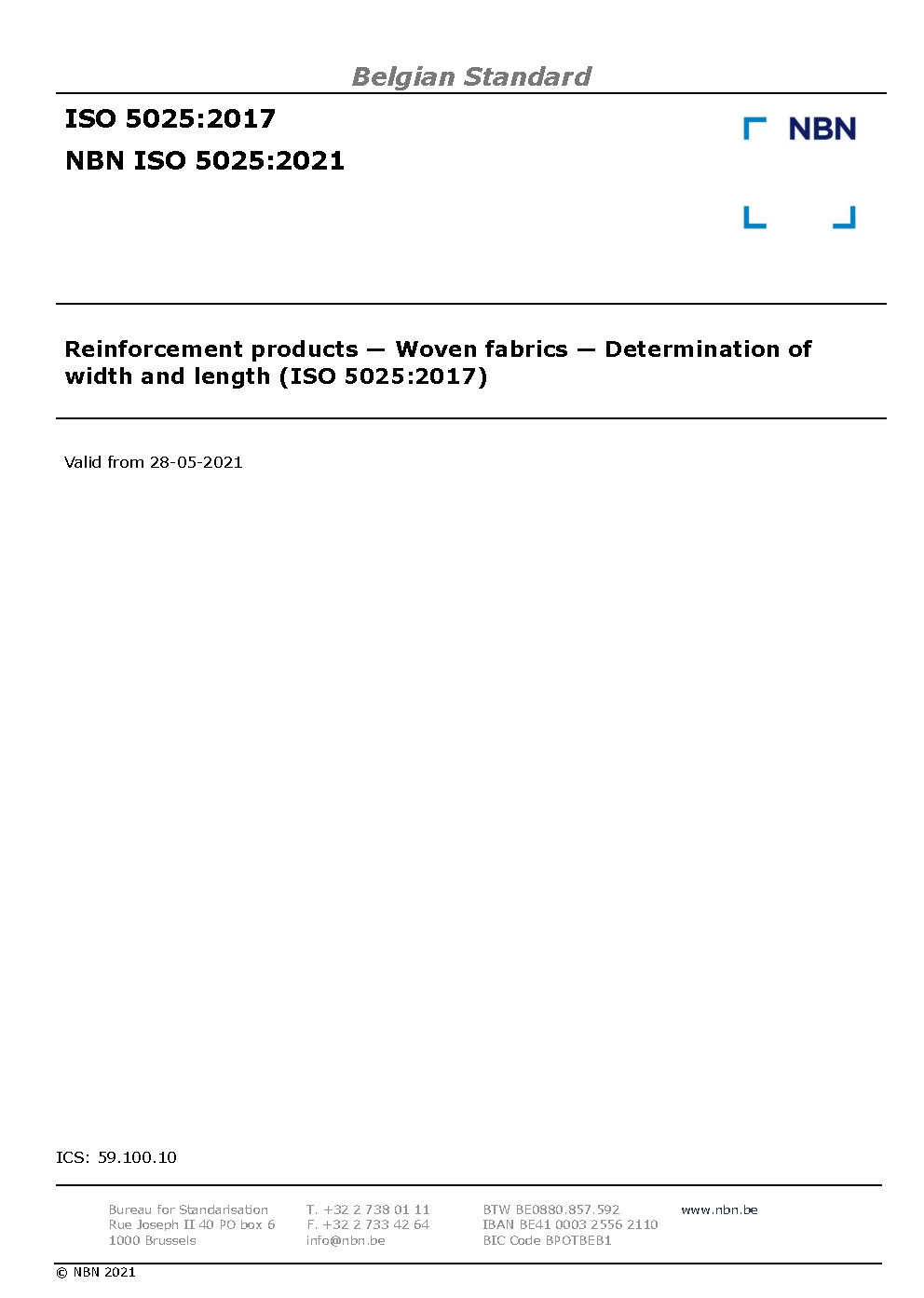 NBN ISO 5025:2021