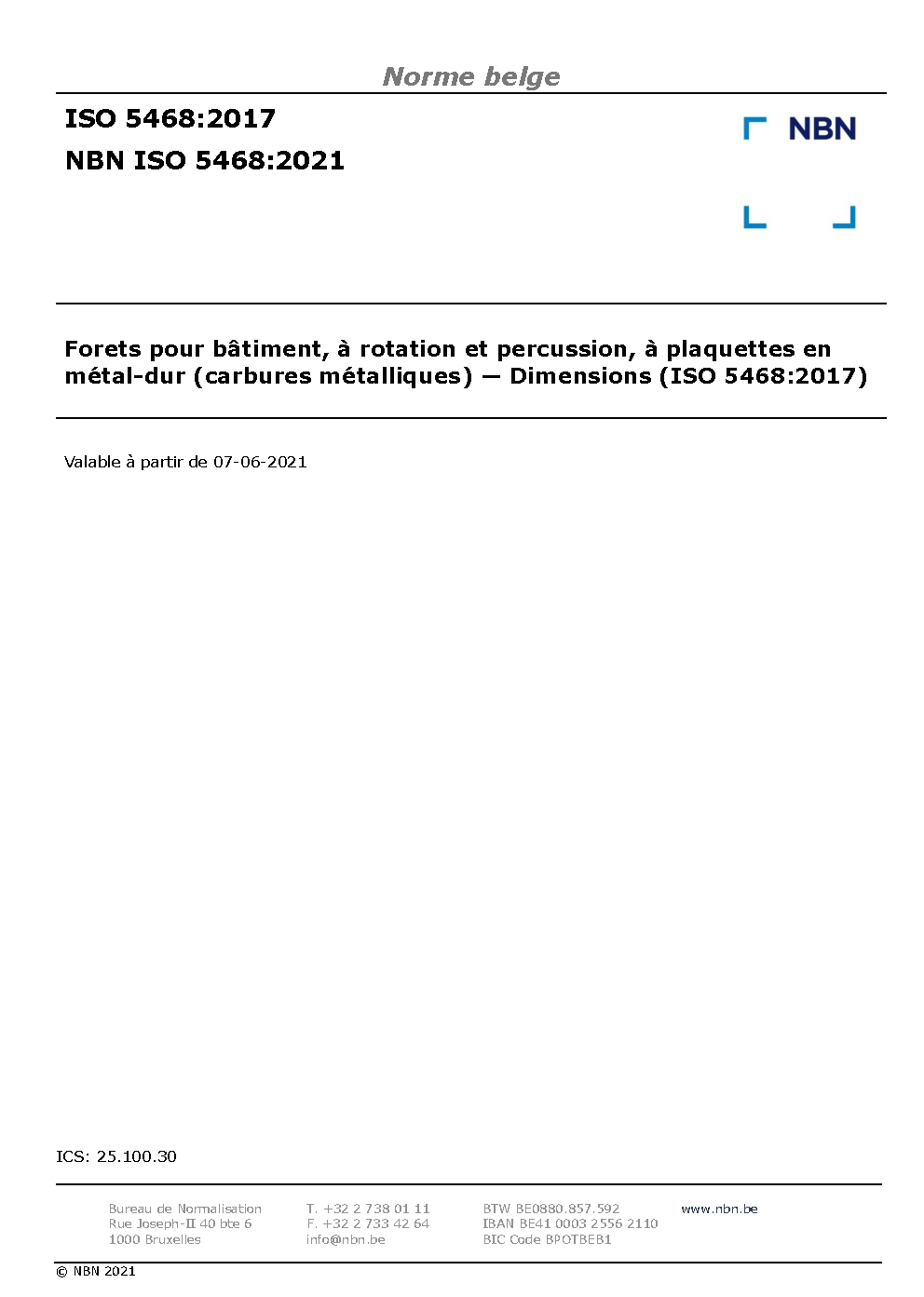 | Publisher | Bureau de Normalisation Belge (NBN) |