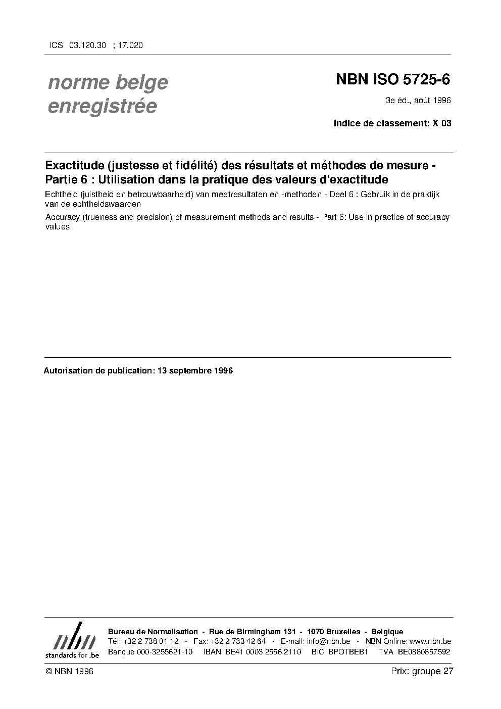 | Publisher | Bureau de Normalisation Belge (NBN) |