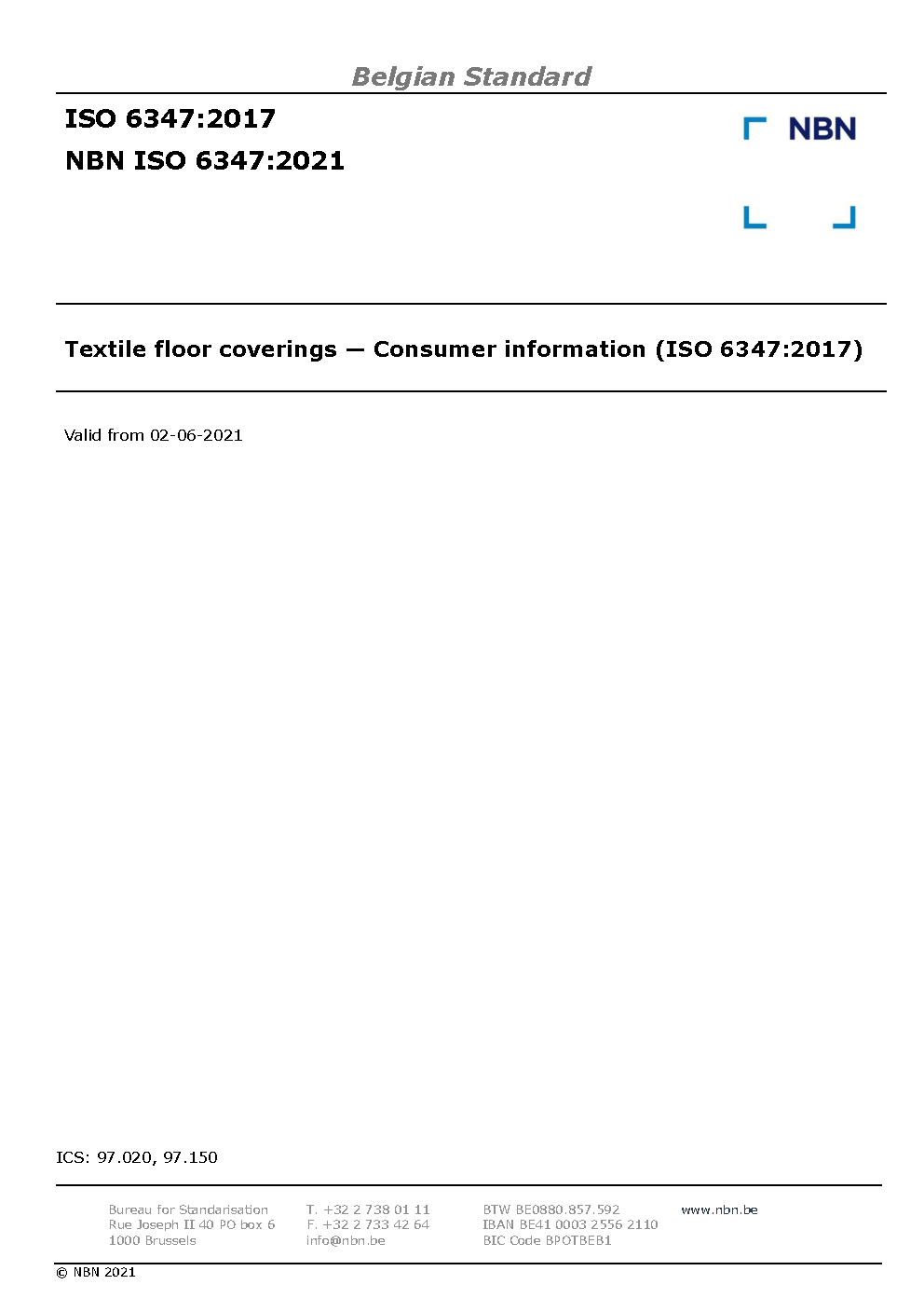 | Publisher | Bureau de Normalisation Belge (NBN) |