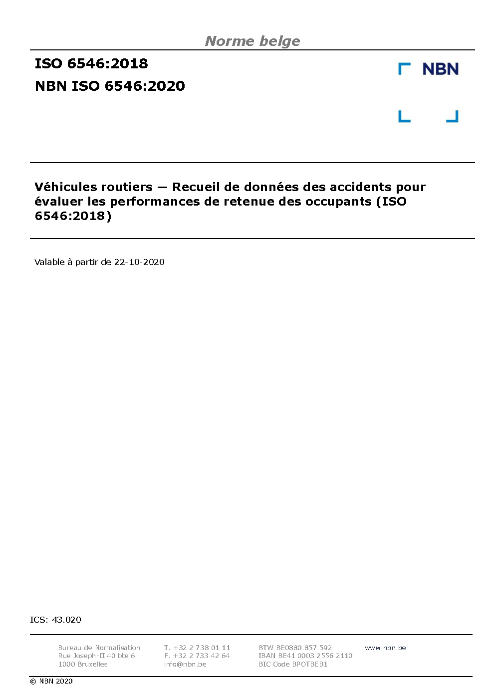 | Publisher | Bureau de Normalisation Belge (NBN) |