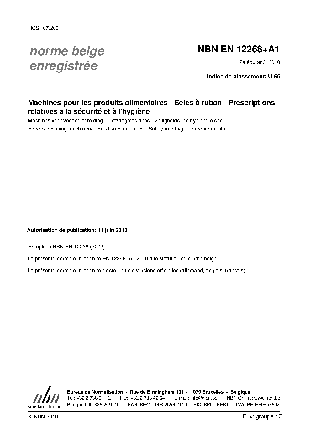 | Publisher | Bureau de Normalisation Belge (NBN) |