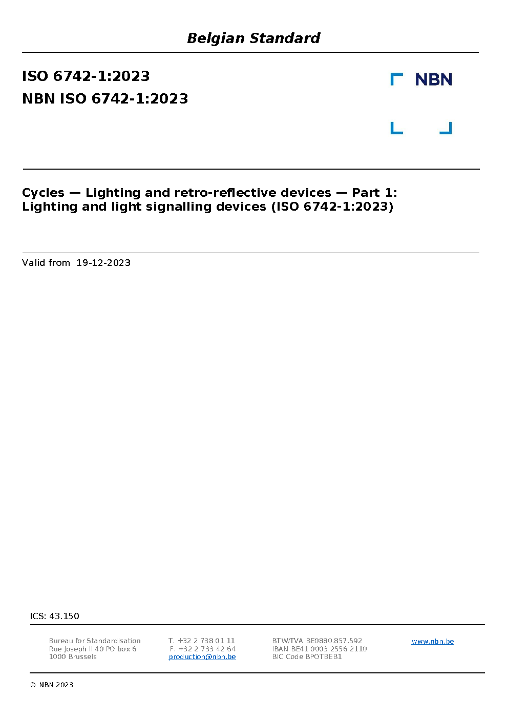 This document specifies the functions, safety requirements, photometric performance and test methods of lighting and signalling devices that can be used on cycles.