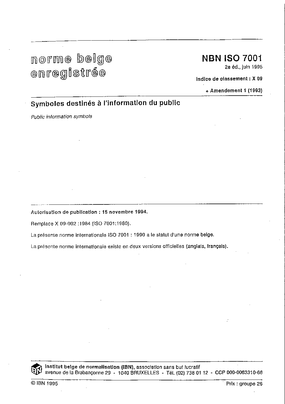 | Publisher | Bureau de Normalisation Belge (NBN) |