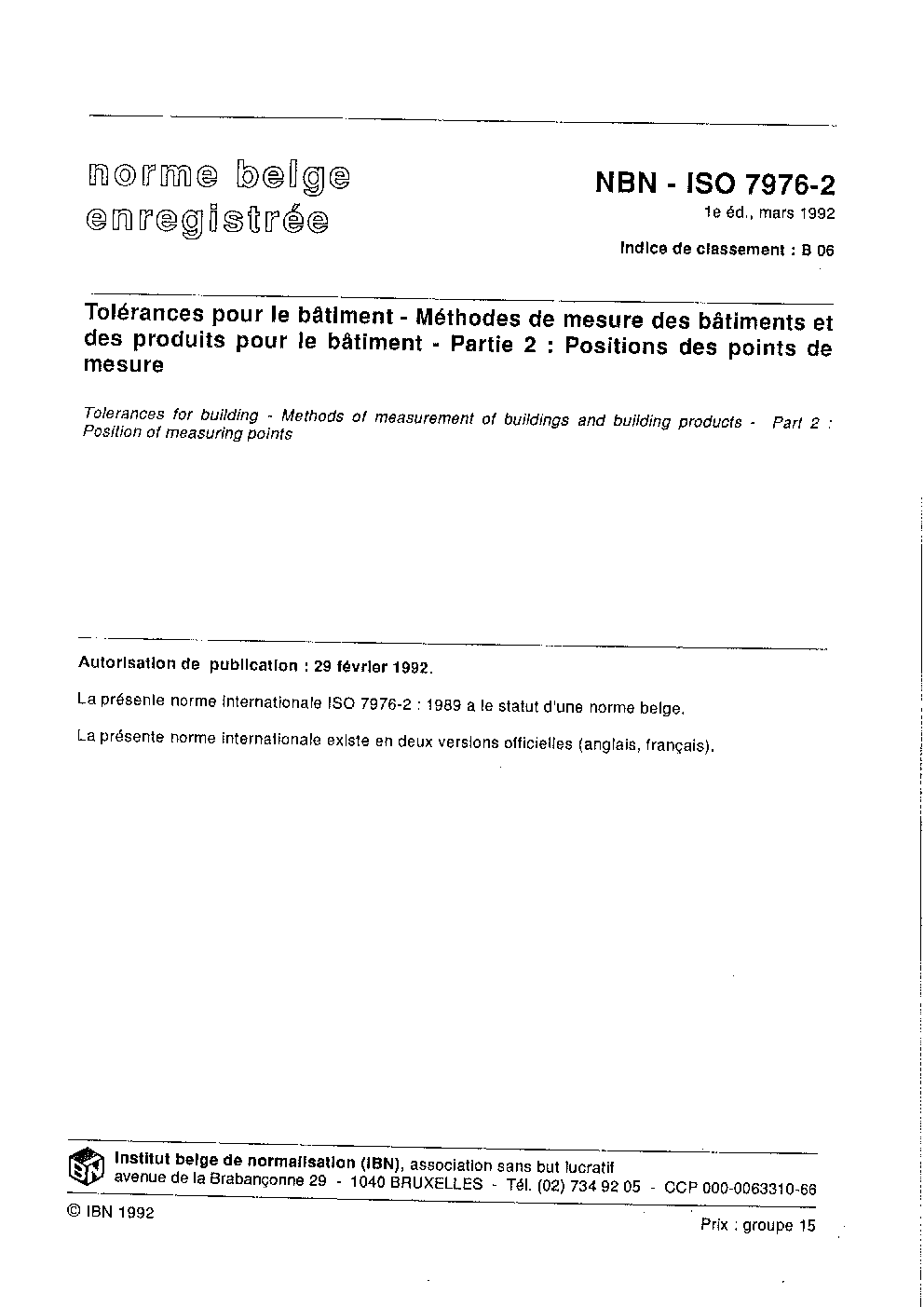 | Publisher | Bureau de Normalisation Belge (NBN) |